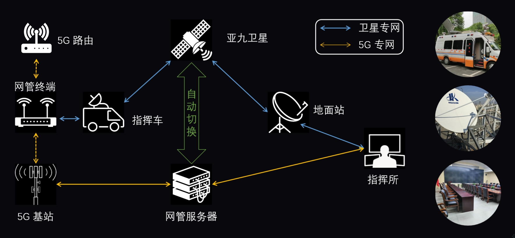 融合卫星网、5G网、地面网等多种网络,可在多种网络间依据业务优先级自动切换通信链路。